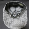 生地はウール混のグレーとダークネイビーヘリンボンとクラシカルな