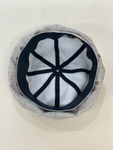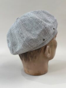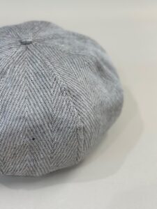 ファブリックの生地感や柄を考慮し8枚剥ぎキャスケットをベースとしたベレーを製作。