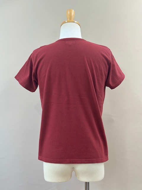 ファブリックは20/-小寸丸胴吊り天竺を選定し、ベースカラーは生成り、バーガンディー、マスタード、ミリタリーグリーン、サックスブルー、パープルの6色展開。