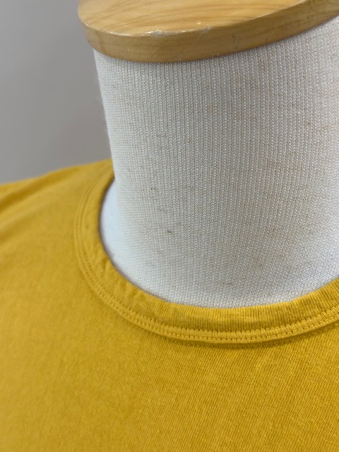 今季新たに1.3mm共地3本針1本落としクルーネックを採用し、3クルーネックの展開に致しました。