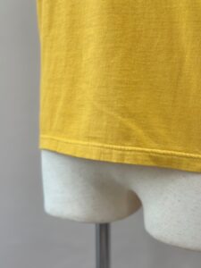 スタンダードソーイングの縫製は主要部分は内縫いの1本針ロック縫製で袖口、裾は2本針縫製の仕様です。
