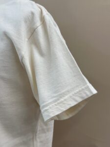 スタンダードソーイングの縫製は主要部分は内縫いの1本針ロック縫製で袖口、裾は2本針縫製の仕様です。