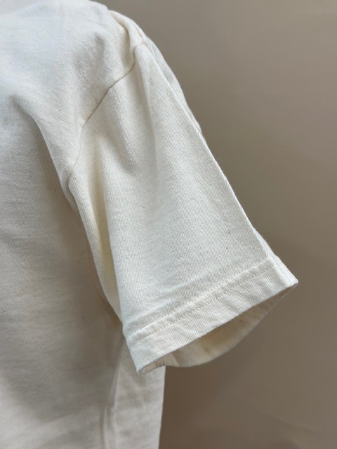 今季新たに1.3mm共地3本針1本落としクルーネックを採用し、3クルーネックの展開に致しました。