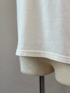 スペシャルソーイングの縫製はフラットシーマや2本針をベースとして袖口、裾は天地縫製を施しております。