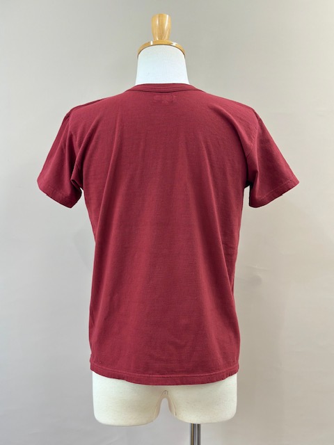 ファブリックは20/-小寸丸胴吊り天竺を選定し、ベースカラーは生成り、バーガンディー、マスタード、ミリタリーグリーン、サックスブルー、パープルの6色展開。