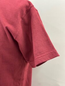 スタンダードソーイングの縫製は主要部分は内縫いの1本針ロック縫製で袖口、裾は2本針縫製の仕様です。