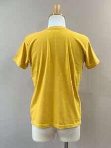 ファブリックは20/-小寸丸胴吊り天竺を選定し、ベースカラーは生成り、バーガンディー、マスタード、ミリタリーグリーン、サックスブルー、パープルの6色展開。