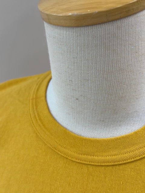 今季新たに1.3mm共地3本針1本落としクルーネックを採用し、3クルーネックの展開に致しました。
