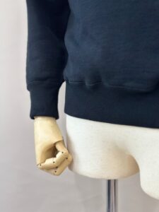 袖口はバインダー仕様、裾も継ぎ目のないフライスを用いたスペシャルな仕様です。
