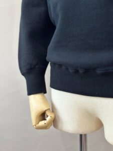 袖口はバインダー仕様、裾も継ぎ目のないフライスを用いたスペシャルな仕様です。