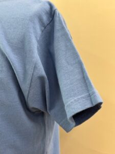 スタンダードソーイングの縫製は主要部分は内縫いの1本針ロック縫製で袖口、裾は2本針縫製の仕様です。
