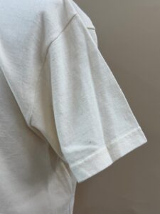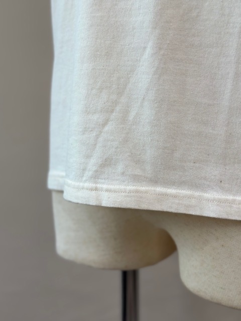 今季新たに1.3mm共地3本針1本落としクルーネックを採用し、3クルーネックの展開に致しました。