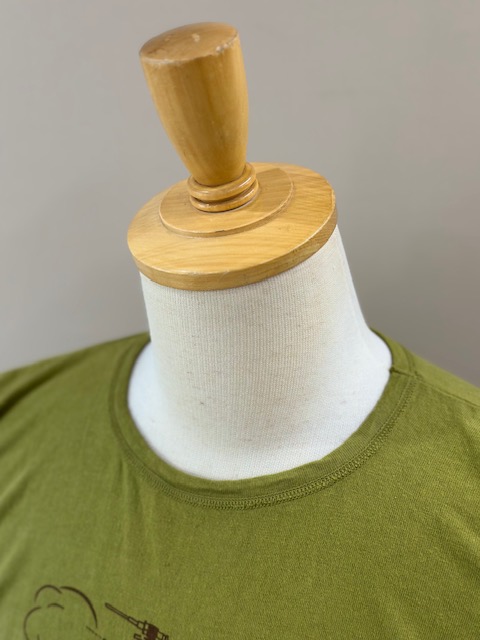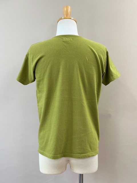 ファブリックは20/-小寸丸胴吊り天竺を選定し、ベースカラーは生成り、バーガンディー、マスタード、ミリタリーグリーン、サックスブルー、パープルの6色展開。
