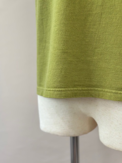 今季新たに1.3mm共地3本針1本落としクルーネックを採用し、3クルーネックの展開に致しました。