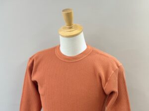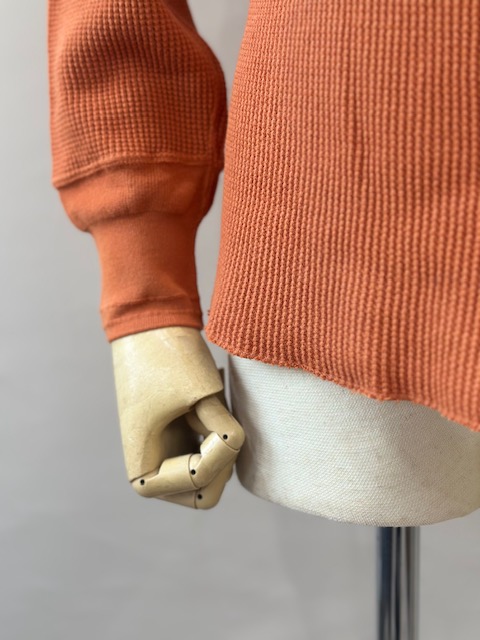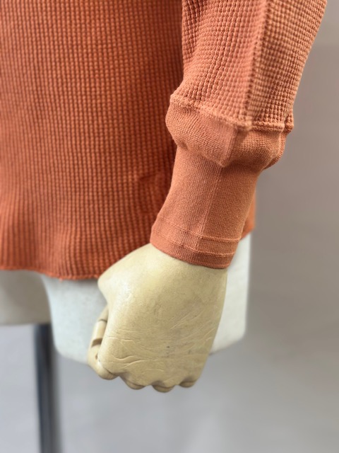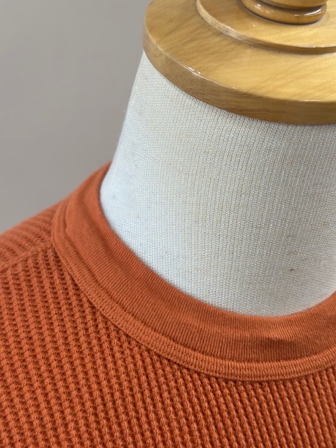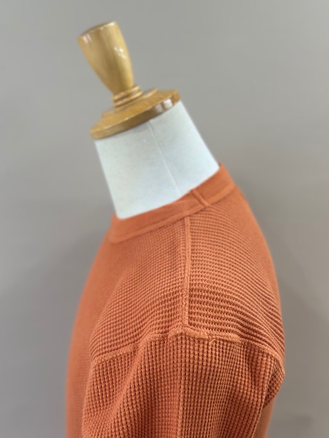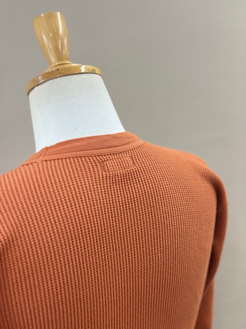 クラシカルなクルーネックワッフルL/S Teeに仕上げました。