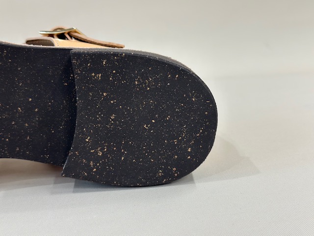 本底には履き心地とクッション性を重視してコルク入り合成ゴムを選定。