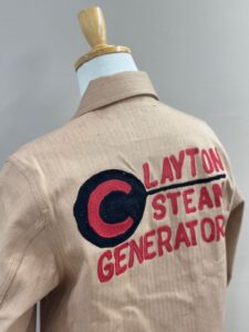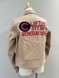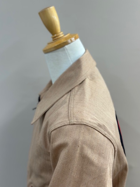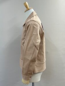黒塗りのジッパーや月桂樹ボタンが大戦期の特徴的なディテールです。
