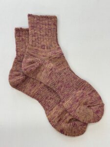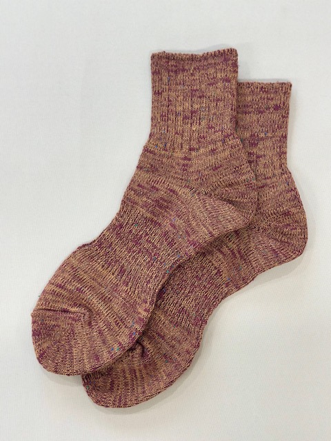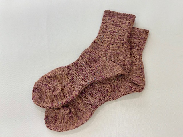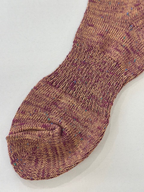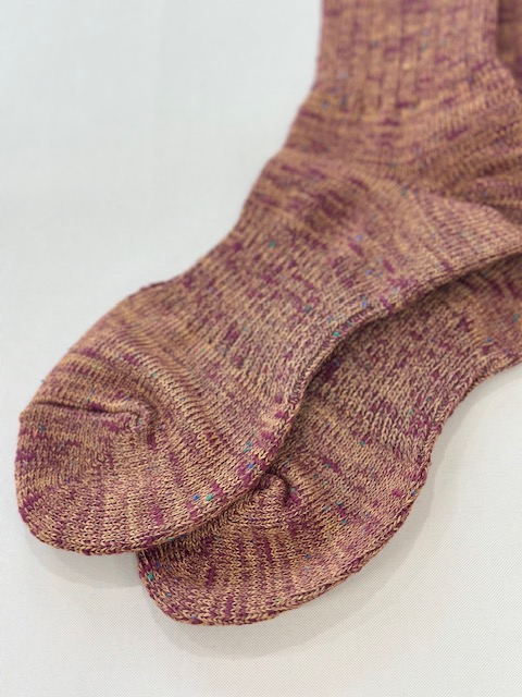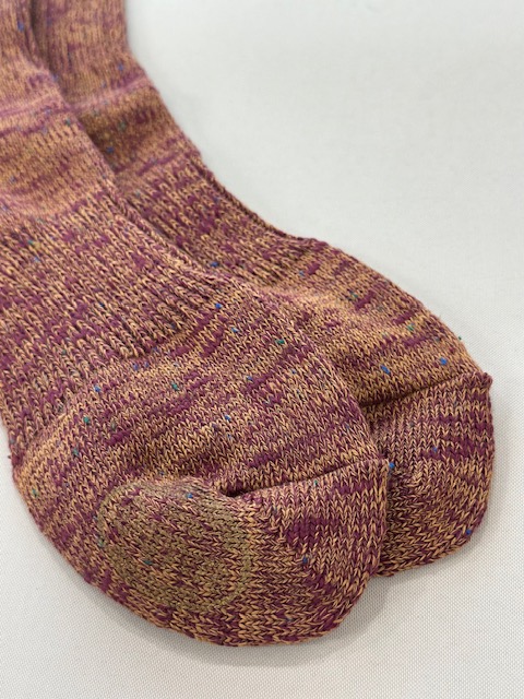 昨シーズン大変ご好評頂きましたカラーネップ糸と綿スラブ糸を選定し製作したミドル丈ソックス