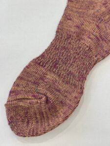 靴下のズレを防ぐため土踏まず部分は1×1のゴム編みを採用し履き心地を追求した1足。