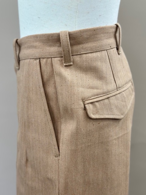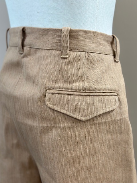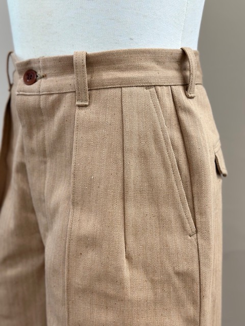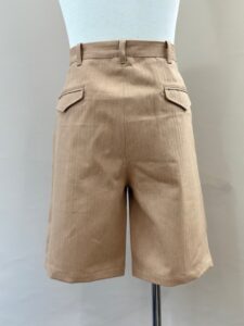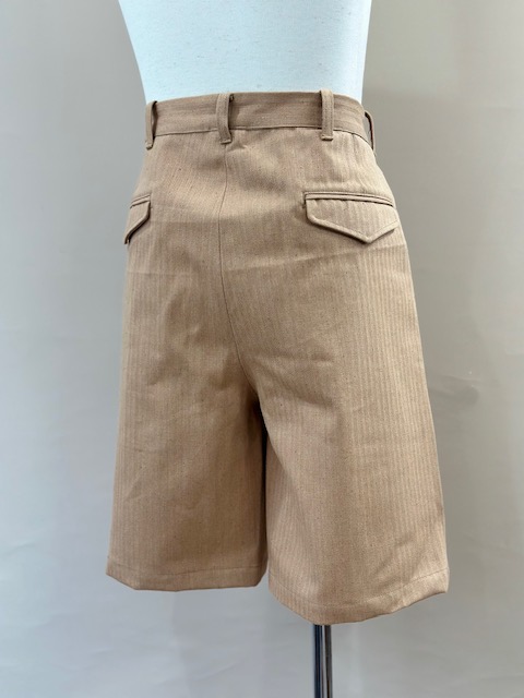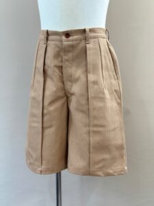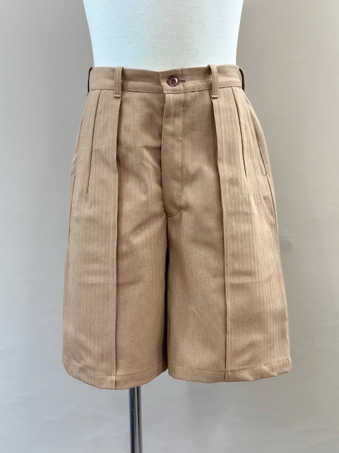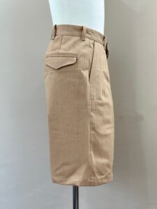 ジッパーフライからボタンフライ仕様に変更しセンタープリーツが特徴的なショーツ。