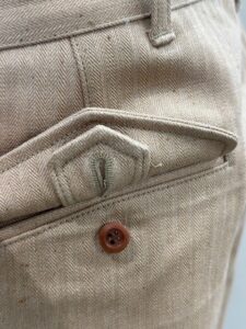 ポケットフラップ裏には隠しボタンホールが付くなど細部まで拘ったディテールが魅力的な一着。