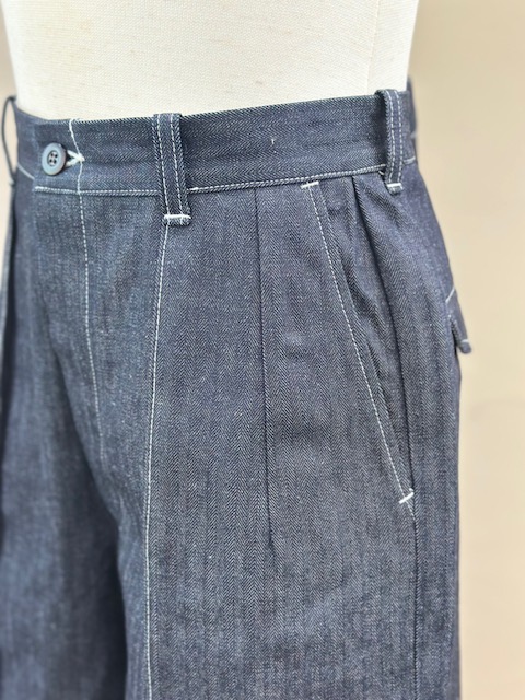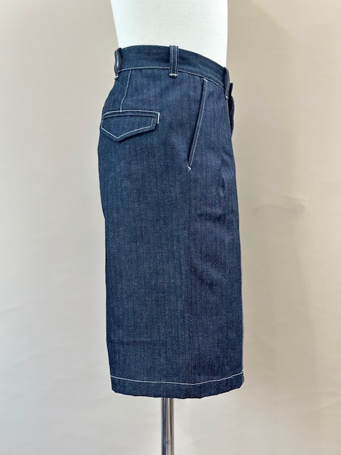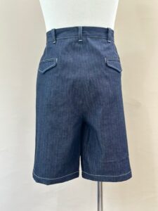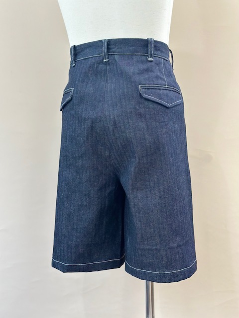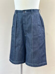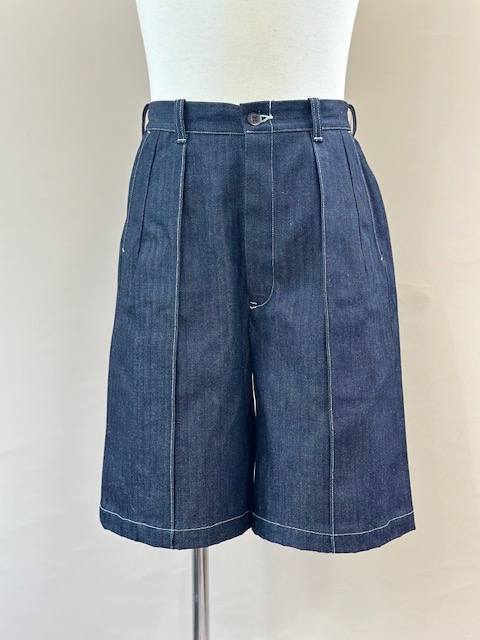 ジッパーフライからボタンフライ仕様に変更しセンタープリーツが特徴的なショーツ。
