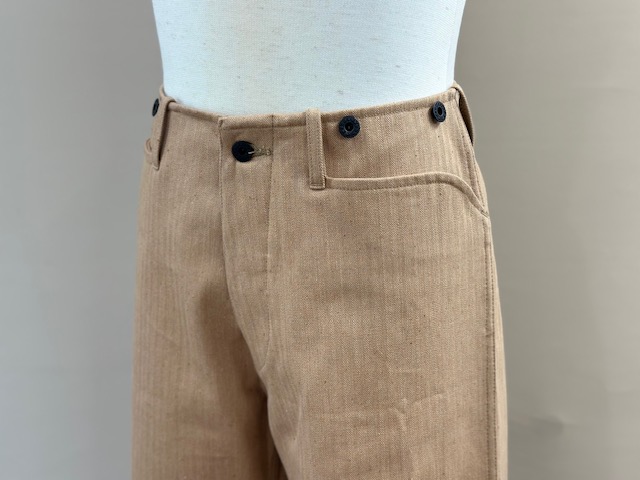 シンプルな形のなかに大戦期のディテールが魅力的でクラシカルなファブリックで落とし込んだWW2フリスコパンツ。