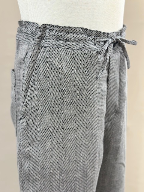 一昨年大変ご好評頂いたイージーパンツを今季は経糸緯糸共に25/1リネン糸を用い