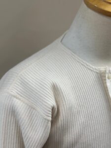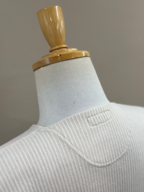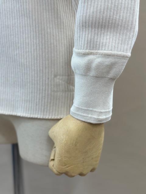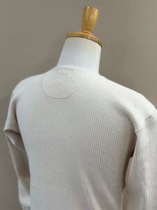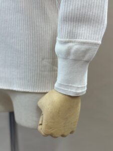 袖リブの横付属も旧い編み機で編み立てた片畦リブを選定し、