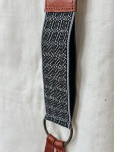 ボタン付け部分と帯の接合にはDカンを選定しより一層クラシカルな印象を与え、