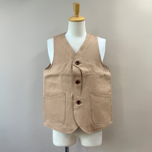 ハンティングベストの中でもシンプルな形なのでワークスタイルからクラシカルなスタイルまで幅広く着用して頂けます。